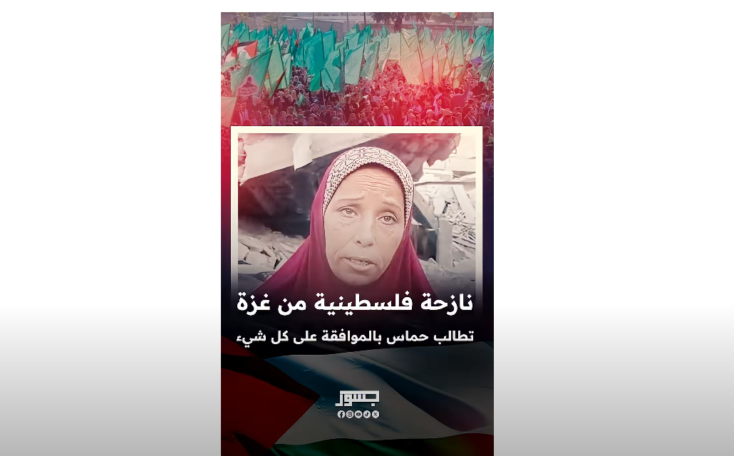 السياسة, فلسطين, تقارير خاصة sayednegm . 9/22/25 السياسة, فلسطين, تقارير خاصة sayednegm . 9/22/25 نازحة فلسطينية من قطاع غزة: نطالب حمـ.ـاس أن توافق على كل شيء Read More السياسة, سوريا, تقارير خاصة sayednegm . 9/11/25 السياسة, سوريا, تقارير خاصة sayednegm . 9/11/25 وين بدي أعيّش.. لاجئة سورية تكشف أسباب عدم عودتها من لبنان Read More السياسة, فلسطين sayednegm . 9/8/25 السياسة, فلسطين sayednegm . 9/8/25 نازحة فلسطينية من غزة توجّه رسالة غاضبة لقادة حماس Read More السياسة, فلسطين sayednegm . 9/1/25 السياسة, فلسطين sayednegm . 9/1/25 نازحة فلسطينية من غزة فقدت زوجها وأبنائها تهدد حماس Read More